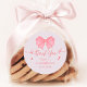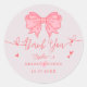 Pegatina Redonda Rubor Rosa Lazo Ella Está Atando el Nudo Despedida