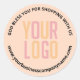 Fondo Rubor. Diga 'Dios bendiga' a sus clientes con sus propios pegatinas del logo de DIY. Estos pegatinas tienen un breve mensaje de 'Dios te bendiga' y un lugar para la URL de tu sitio web. Edite fácilmente la plantilla en los detalles de su negocio y cargue su logotipo. Rubor Su Logo URL de negocios Gracias Pegatina de redondeo clásico.