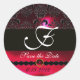 Pegatina Redonda RUBY NEGRO Y ROJO DAMASK MONOGRAM, borgoña