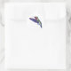 Un delicioso colibrí con trompetas de rubí sobresale a mitad de vuelo.