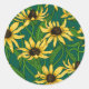 Pegatina Redonda Rudbekia amarilla en verde oscuro