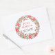 Pegatina Redonda Ruidosa floral roja verde alegre Navidad