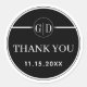 Celebra tu día especial con un toque de elegancia usando las Iniciales Blancas y Stripe Gracias boda Pegatina Redondo Clásico. Este impresionante diseño muestra una elegante franja blanca adornada con un elegante marco redondo que exhibe con gusto las iniciales de la pareja feliz con un sofisticado fondo negro. La sincera frase ‘Gracias' agrega un toque de gratitud, haciendo que sea la manera perfecta de expresar su aprecio a sus seres queridos por ser parte de su alegre celebración.