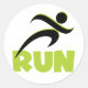 Diseño de ejecución con camisetas, caramelos, camisetas de manga larga, botones, bolsos, agujeros y otras prendas de vestir y regalos con un corredor de siluetas negro y un texto verde primavera que dice RUN. Si estás entrenando para correr tus primeros 5K, solo te encanta correr, o has hecho varias maratones, te encantarán estas prendas de vestir y artículos de regalo.