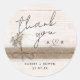 Rustic Neutral Boho Burlap Floral "Faux Wood - look" Boda de Flores Silvestres Gracias Pegatina Redondo Clásico. * Nota - En la creación de este artículo no se utiliza ninguna madera, burlap ni flores secas.