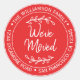 These Rustic Bright Red New Address Round Labels feature a bold circular layout, white distressed script, and leafy accents for a cheerful and eye-catching way to announce your move. Perfect for updating return addresses, sealing envelopes, or including with moving announcements. Customize with your family name and new address for a polished finishing touch.