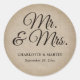 Pegatina Redonda Rustic Burlap Sr. y la Sra. Boda