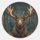 Pegatina Redonda Rustic Christmas moose deer boho woodland forest