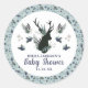 Pegatina Redonda Rustic Deer Head Blue Floral Moderno Baby Shower