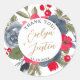 Añada un toque final delicioso a sus favores matrimoniales con nuestro Pegatina Rustic Elegant Winter Floral Round. Este diseño se completa perfectamente con la encantadora atmósfera de invierno de su celebración, con un marco acuático pintado a mano adornado con una elegante mezcla de flores rojas, suaves tonos azules y ramas verdes de pino. Cada pegatina lleva un sincero mensaje de gratitud, haciendo que sus favores sean aún más memorables para sus invitados.