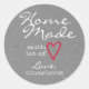 Pegatina Redonda Rustic Homemade with Love Red Heart Grey Paper