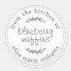 Personalizable rústico y moderno pegatina de muffins de arándano azul hecho en casa con el texto de la cocina de, muffins de arándano azul y tu nombre en escritura moderna con un fondo blanco. Simplemente personalizar este pegatina de regalo personalizado de horneado con su texto, el nombre del producto y su nombre. Diseñado exclusivamente para usted por Happy Dolphin Studio. Si necesita ayuda o productos coincidentes, por favor contáctenos en happydolphinstudio@outlook.com.