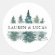 Pegatina Redonda Rustic Pine Trees Forest Thank You Wedding