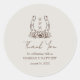 Añada el toque final perfecto a sus favores matrimoniales con este Pegatina de agradecimiento de estilo rústico occidental de Boho. Con un delicado boceto de herradura y escudo floral en marrón neutro, el pegatina incluye sus iniciales dentro del escudo y un mensaje de "Gracias" en elegante caligrafía moderna, todo ello sobre un cálido fondo beige crema. Estos pegatinas redondos son ideales para sellar bolsos de favores, cajas de regalo o sobres en su rancho, granero, occidente, boho o boda rústica de campo. Sencillo, moda y personal, una manera sincera de agradecer a sus invitados con el encanto occidental.