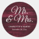 Pegatina Redonda Rustic Wood Burgundy Red Mr y Mrs Boda