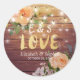 Pegatina Redonda Rustic Wood Floral String Lights Boda Gracias
