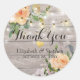 Plantilla de Pegatina de Gracias a Favor de la Boda - Guión Elegante con Floral de rosas blancas de color Peach y Luces de cuerda sobre fondo rústico de madera. ¡Un Diseño Perfecto Para Tu Gran Día! Todos Los Estilo De Texto, Los Colores Y Los Tamaños Se Pueden Modificar Para Ajustarse A Sus Necesidades.
