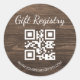 Pegatina Redonda rustic wood gift registry qr code baby shower