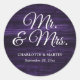 Pegatina Redonda Rustic Wood Purple Mr. y Mrs. Boda
