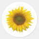 Regalo de música country pegatina redondo con una imagen de flor de girasol amarillo brillante sobre un fondo blanco. Ideal para añadir un toque floral a tus cartas o regalos.