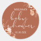 Una elegante y elegante ducha de bebé favorece a un pegatina con una tipografía elegante y un follaje rústico bonito sobre un fondo de terracota. Diseñado por Thisisnotme©