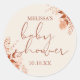 Una elegante y elegante ducha de bebé favorece a un pegatina que presenta una elegante tipografía de terracota y un follaje rústico bonito. Diseñado por Thisisnotme©