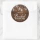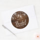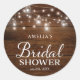 Pegatina redondo Rustic Bridal Shower con luces en frascos de máscaras y cuerdas de luces con la palabra "Bridal Shower" contra un fondo de patrón de madera marrón. Es el pegatina perfecto para una ducha de novia rústica o rural. Consulta la invitación coincidente y elementos como pegatinas y sellos aquí https://www.zazzle.com/collections/rustic_wood_mason_jars_and_lights-119202204970019494?rf=238364477188679314 Personalízalo reemplazando el texto del marcador de posición para añadir tu información. Para obtener más opciones, haga clic en el botón "Personalizar". *Tenga en cuenta que la marca de agua Zazzle que aparece en la vista previa del zoom NO aparecerá en el producto impreso final. © Rosewood y Citrus
