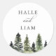 Pegatina Redonda Rústico Boda de pinos de bosques