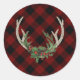 Pegatina Redonda Rústico Boho Deer Antlers | Navidades Plaid Floral