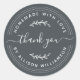 Rústico y moderno hecho en casa con amor gracias pegatina con el texto hecho en casa con amor, gracias y su nombre en blanco y elegante caligrafía de escritura manuscrita en un fondo negro. Simplemente agregue su nombre y texto personalizado a la etiqueta de agradecimiento. Diseñado exclusivamente para usted por Happy Dolphin Studio. Si necesita ayuda o productos coincidentes, por favor contáctenos en happydolphinstudio@outlook.com.