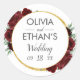 Pegatina Redonda Rústico elegante Rosa Rojo Floral Oro Boda Blanco