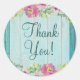 Pegatina Redonda Rústico Floral Blue Wood Baby Shower Gracias