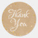 Rústico kraft oro corazones novia ducha, gracias pegatina redondo clásico. Diseñado para coordinar con nuestros corazones dorados la colección de ducha de novia confeti. Con textos blancos y corazones dorados dispersos sobre un fondo rústico kraft, este pegatina de ducha de moda es ideal para sellar sobres de invitación y favores de fiesta.
