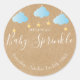 Pegatina Redonda Rústico kraft melliza la ducha de bebé azul