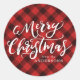 Pegatina Redonda Rústico Merry Christmas Script Red Plaid