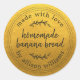 Pegatina rústico y moderno de pan bananero hecho en casa con el texto hecho con amor, pan bananero hecho en casa y tu nombre en caligrafía de escritura blanca moderna sobre un fondo oro clásico. Simplemente agregue su nombre y el nombre del producto a la etiqueta. Diseñado exclusivamente para usted por Happy Dolphin Studio. Si necesita ayuda o productos coincidentes, por favor contáctenos en happydolphinstudio@outlook.com.
