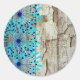 Pegatina Redonda Rústico País Viejo Barn Madera Flores azules Verde