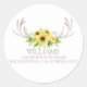 Pegatina Redonda Rústico Sunflowers Deer Antlers Regreso Dirección