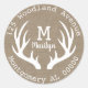Pegatina Redonda Rústico Woodland Deer Antlers Faux Burlap Direcció