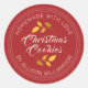 Pegatina de productos caseros rústico y moderno con el texto casero hecho con amor, galletas de navidades y tu nombre en tipografía moderna sobre un fondo rojo festivo con un toque elegante de follaje dorado. Simplemente agregue su nombre y el nombre del producto a la etiqueta. Diseñado exclusivamente para usted por Happy Dolphin Studio. Si necesita ayuda o productos coincidentes, por favor contáctenos en happydolphinstudio@outlook.com.