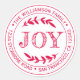 Navidades familia pegatina de direcciones de retorno redondo con su nombre y dirección en una tipografía elegante de tinta roja muestra el texto JOY en tipografía escrita a mano con un toque elegante de follaje rústico. Simplemente agrega tu nombre y dirección. Diseñado exclusivamente para usted por Happy Dolphin Studio. Si necesita ayuda o productos coincidentes, póngase en contacto con nosotros a través del chat de nuestra tienda. ¡Felices fiestas y Feliz Navidad!