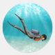 Buceador con equipo completo de buceo en aguas azules del océano.