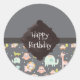Pegatina Redonda Safari Animals Patrón Arte de guardería Feliz Cump