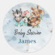 Pegatina Redonda Safari Wildone baby ducha invitación azul