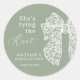 Eleva tu fiesta de Despedida de Soltera con esta elegante Sticker Redondo Clásico de Sage Escritura Arco Ella Está Anudando Despedida de Soltera.