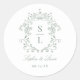 Pegatina Redonda Sage Green Elegante Escudo Barroco Monograma Boda