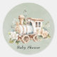 Pegatina Redonda Sage Green Floral Train Boy Baby Shower