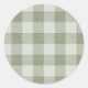 Pegatina Redonda Sage Green Gingham Buffalo Check Linen Texture