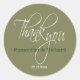 Elegantes y elegantes stickers de boda en verde sabio con tipografía de escritura de agradecimiento. Personalice con nombres de novias y novios y fecha de boda.