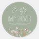 Pegatina Redonda Sage Green Wildflower Boho Baby Shower En Bloom